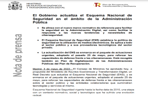 El Gobierno actualiza el Esquema Nacional de Seguridad en el ámbito de la Administración Pública