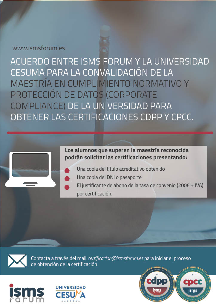 Prepara tu examen de certificación con el Curso de Cyber Compliance: adecuación al nuevo marco normativo de la ciberseguridad que ofrecemos. Toda la información sobre este curso está disponible a través del siguiente enlace.