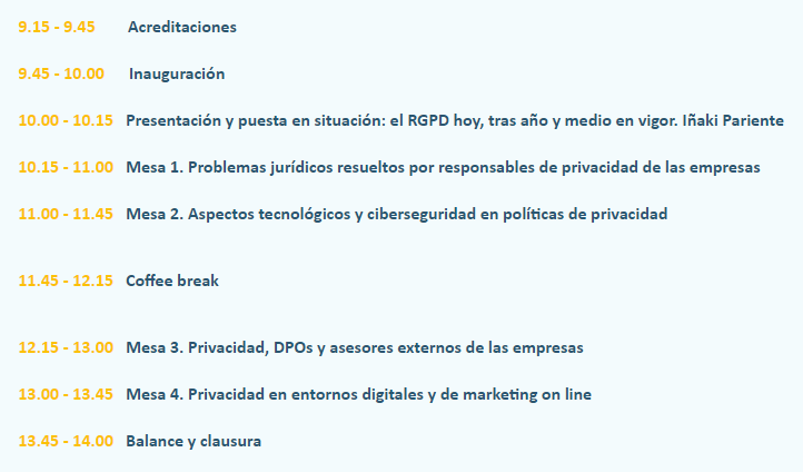 Múltiples expertos en privacidad que han implementado políticas y medidas necesarias para cumplir con el nuevo marco normativo, compartirán sus experiencias, conocimientos y buenas prácticas adquiridas en las organizaciones que han contado con ellos, de manera interna o externa.