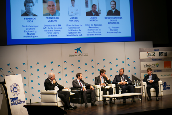 El pasado 18 de octubre tuvo lugar la tercera edición del Foro de la Movilidad e IoT de ISMS Forum en el Auditorio Principal de CaixaForum Madrid (Paseo del Prado, 36. Planta -2). Profesionales de la seguridad de la información se dieron cita para abordar los retos a los que se enfrenta el sector en estos momentos, dando cuenta de experiencias y casos de éxito de compañías en su adaptación al entorno IoT.