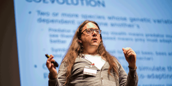 Tras la bienvenida, se prestó especial interés al área de la Inteligencia Artificial de la mano de Anthony Bucci. En su ponencia titulada “Coevolution and cyber exploitation”, explicó las claves de la computación evolucionaria y la Inteligencia Artificial así como la manera en que se puede aplicar a la ciberseguridad a través de la información obtenida a partir de algoritmos.