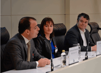 Gianluca D´Antonio, Teresa Ramos y Mariano J. Benito en el VII Encuentro de Cloud Security Alliance.