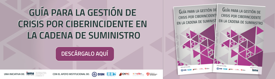 ISMS Forum -International Information Security Community- lanza la Guía para la Gestión de Crisis por Ciberincidente en la cadena de suministro, con el apoyo institucional de entidades como el Departamento de Seguridad Nacional (DSN), el Centro Criptológico Nacional (CCN), el Centro Nacional de Protección de Infraestructuras y Ciberseguridad (CNPIC)el Instituto Nacional de Ciberseguridad (INCIBE) y la Agència de Ciberseguretat de Catalunya en el marco de  la celebración de la primera edición de su Foro Digital, bajo el título “Cyber Security & Data Protection Online Forum”.