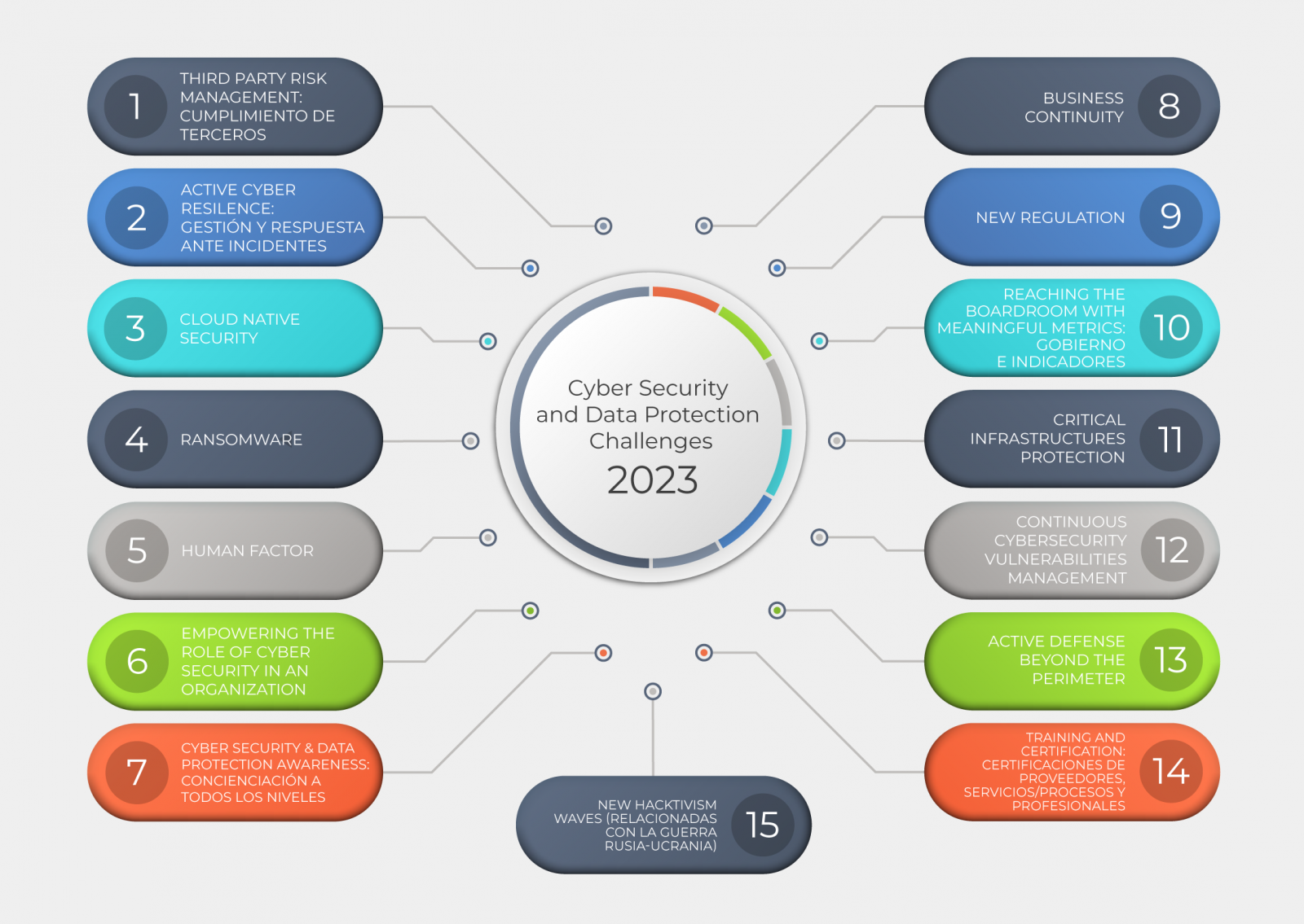 Hemos elaborado una relación de 15 temáticas que en este 2023 ocuparán el foco de las áreas de seguridad de la información y de gobierno TI de las organizaciones, siendo las que más preocupan las que ocupan los primeros puestos.