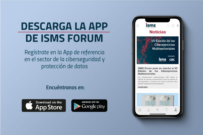 ISMS Forum -International Information Security Community- lanza su propia App pensada para que tengas las novedades del sector de la ciberseguridad y protección de datos en un mismo sitio: últimas noticias, estudios, documentos y actividades relacionadas con las temáticas de ciberseguridad, privacidad, movilidad e IoT, Cloud y Continuidad de negocio, entre otras. ¡Búscanos en las plataformas App Store o Google Play!