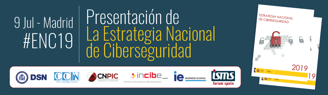 8 de julio de 2019. La Asociación Española para el Fomento de la Seguridad de la Información, ISMS Forum Spain, junto al Departamento de Seguridad Nacional (DSN) y la colaboración del Centro Criptológico Nacional (CCN), el Centro Nacional para la Protección de Infraestructuras y Ciberseguridad (CNPIC), el Instituto Nacional de Ciberseguridad (INCIBE) y el IE Business School (IE), presentará la Estrategia Nacional de Ciberseguridad mañana martes 9 de julio, en horario de 11 a 13h, en el Auditorio del IE Business School (María de Molina, 11).