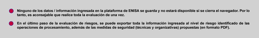 La evaluación de riesgos es el primer paso hacia la adopción de medidas de seguridad apropiadas para la protección de datos personales. Esta herramienta presenta un enfoque simplificado que puede guiar a las pymes a través de su operación específica de procesamiento de datos y ayudarlas a evaluar los riesgos de seguridad relevantes. Como tal, el enfoque propuesto no presenta una nueva metodología de evaluación de riesgos, sino que se basa en el trabajo existente en el campo ( CNIL – Metodología de gestión de riesgos de privacidad , ENISA – Recomendaciones para una metodología de evaluación de la gravedad de las infracciones de datos personales , ENISA – Gestión de riesgos y evaluación de riesgos para pymes ) para proporcionar orientación a las pymes. Cabe señalar que el enfoque propuesto está destinado a admitir controladores / procesadores de datos y no a actuar como un mecanismo de cumplimiento.