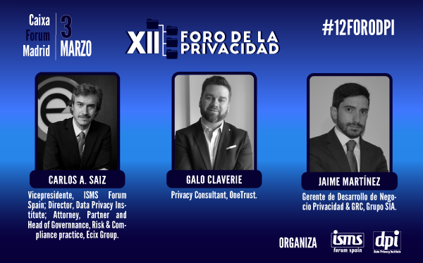 El próximo 3 de marzo se celebra el XII Foro de la Privacidad, un encuentro organizado por el Data Privacy Institute junto con ISMS Forum, que reunirá a instituciones, profesionales y a máximos expertos en privacidad que tratarán de abordar diversos temas como la Ley Orgánica de Protección de Datos Personales y garantía de los derechos digitales, la gobernanza en la protección de datos, la RGPD, el cumplimiento de terceros, la madurez en la protección de datos, o la ética digital. El evento tendrá lugar en el Auditorio Principal de CaixaForum Madrid (Paseo del Prado, 36. Planta 2).