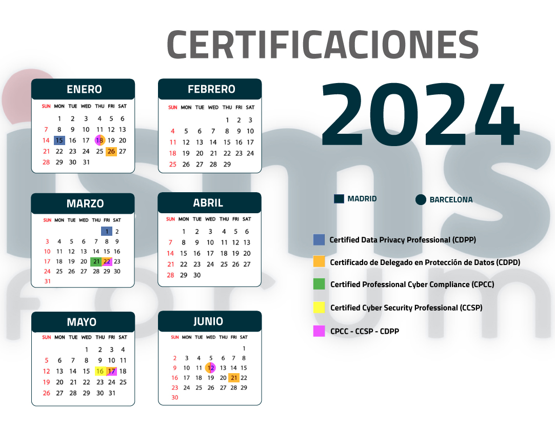 Hemos planificado las fechas de examinación para nuestras certificaciones CDPP -Certified Data Privacy Professional-, CCSP -Certified Cyber Security Professional-, CPCC -Certified Professional Cyber Compliance-, y la certificación CDPD -Certificación de Delegados de Protección de Datos- de la AEPD.
