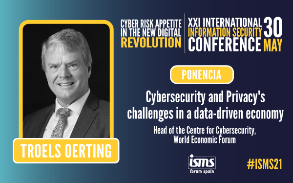 Uno de los ponentes confirmados que intervendrán durante el día es Troels Oerting, Jefe del Centro de Ciberseguridad establecido por el Foro Económico Mundial en 2018. Ha estado trabajando en ciberseguridad durante los últimos 38 años y ha ocupado un elevado número de puestos importantes tanto a nivel nacional como internacional, y tanto en instituciones públicas como privadas.