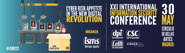 La Asociación Española para el Fomento de la Seguridad de la Información, ISMS Forum, celebrará su vigesimoprimera edición de la Jornada Internacional de Seguridad de la Información el próximo día 30 de mayo en el Círculo de Bellas Artes de Madrid (C/ Alcalá 42, Acceso por C/ Marqués de Casa Riera, 2).