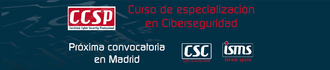 No te quedes sin tu plaza para la próxima convocatoria del Curso de especialización en Ciberseguridad: Certified Cyber Security Professional (CCSP), organizado por ISMS Forum, que comenzará el 5 de marzo de 2018. ¿Aún no te has apuntado?