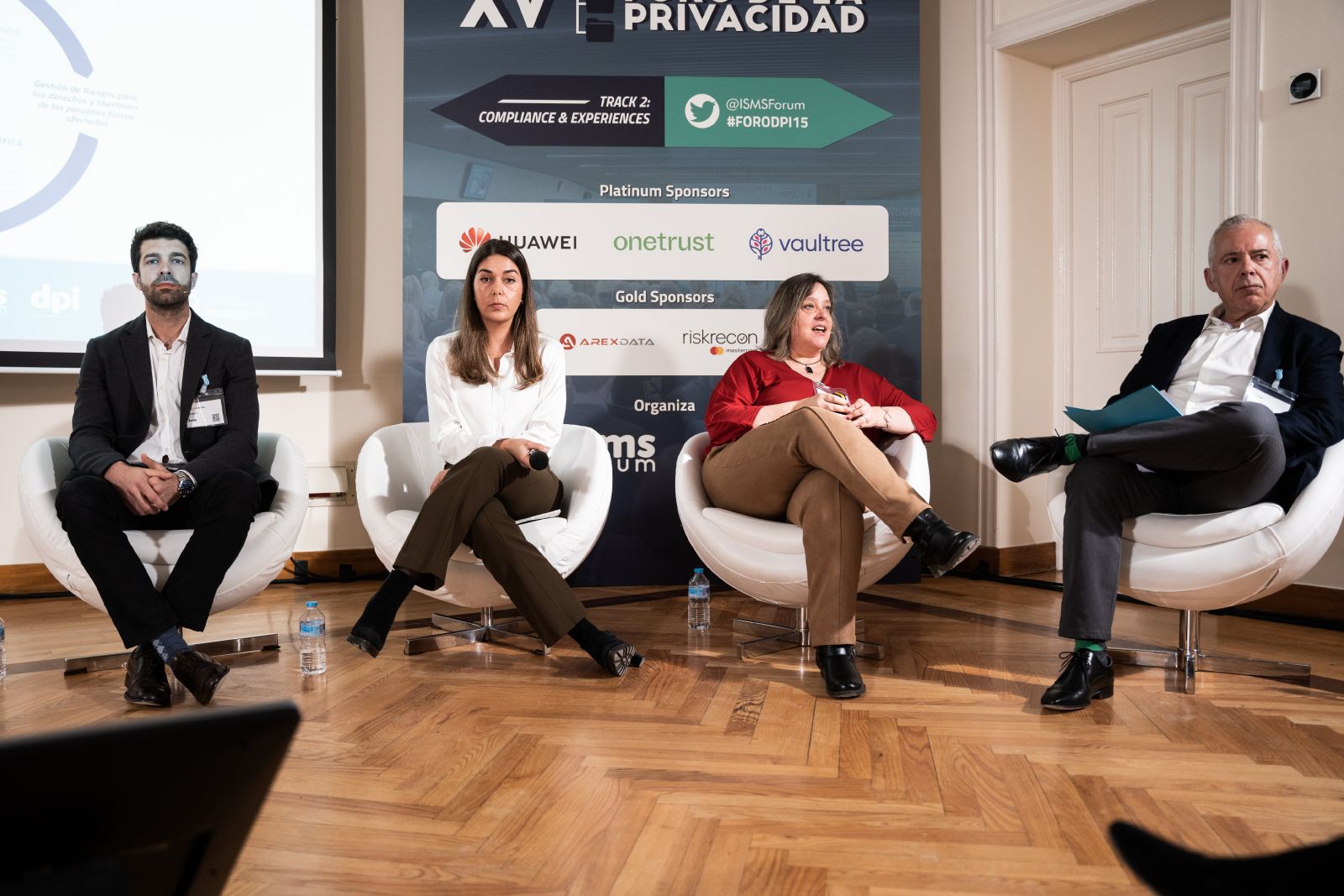 Esta ponencia fue realizada por sus coordinadores Susana Rey, de la Oficina del DPO de MásMovil y miembro del Board del Capítulo Gallego de ISMS Forum, y Javier Lomas, Delegado de Protección de Datos de Codere Group, junto a dos integrantes de este grupo de trabajo creado al efecto como fueron Tomás Sánz, Responsable de la Oficina Ejecutiva de Protección de Datos en ING Spain & Portugal, y Gisela Reverter, Asesoría Jurídica Corporativa de VidaCaixa.